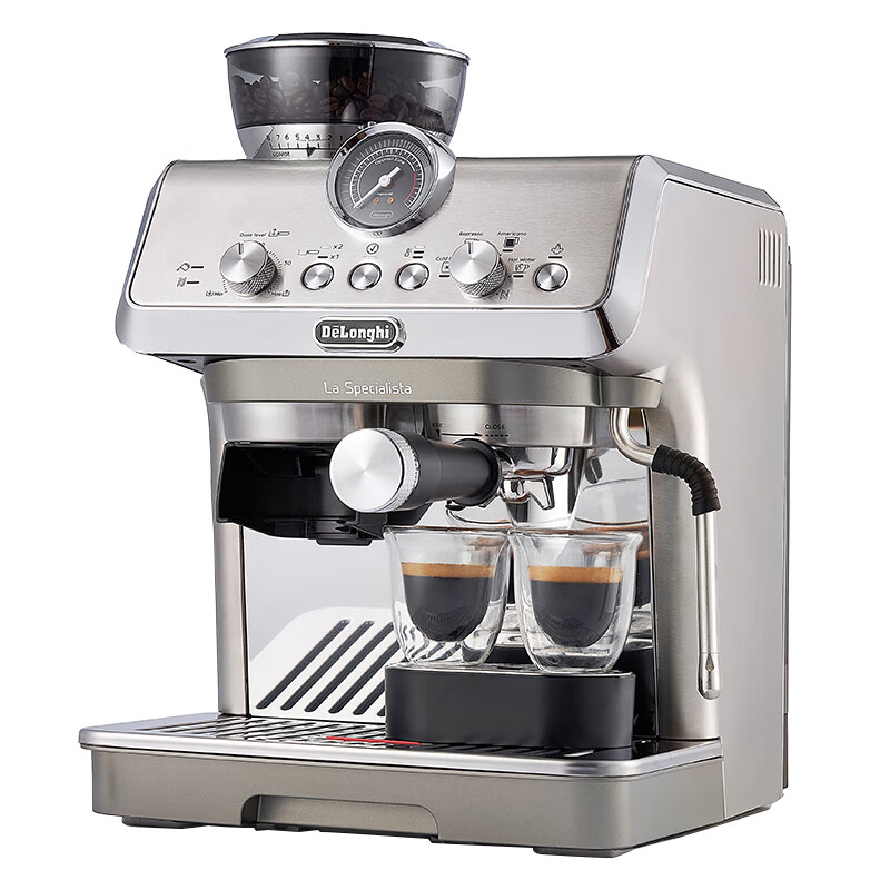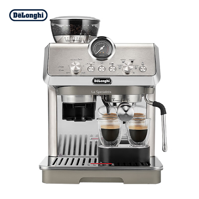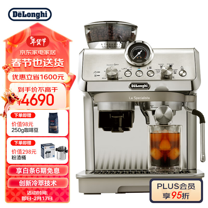 德龙(Delonghi)咖啡机 骑士系列半自动咖啡机 冷萃技术 意式家用 一体式研磨器 小巧机身 EC9255.M 银色价格:4690.00元!