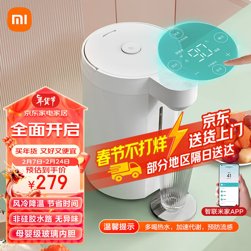 米家智能电热水瓶 5L材质煮水无异味一键长沸除氯1600W大功率三大煮水模式5L大容量±1℃ 精准调温价格:279.00元!