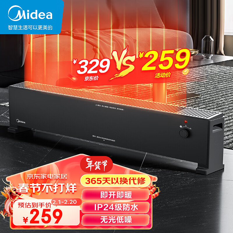 美的(Midea)【速热】石墨烯踢脚线/取暖器家用/电暖器/电暖气/移动地暖/电暖风机/烤火炉大面积除菌 HDU22M价格:343.00元!