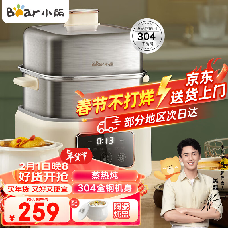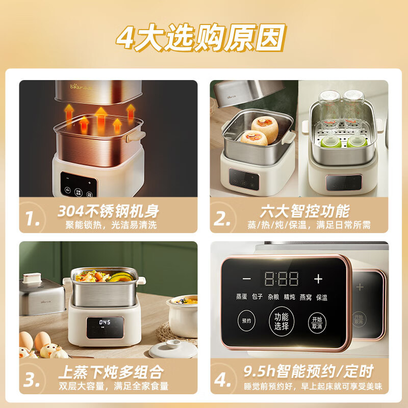 小熊(Bear)电蒸锅 双层家用多功能蒸炖锅 微电脑可预约定时 带自动断电保护煮蛋器 不锈钢蒸蛋器 ZDQ-C06H1价格:259.00元!