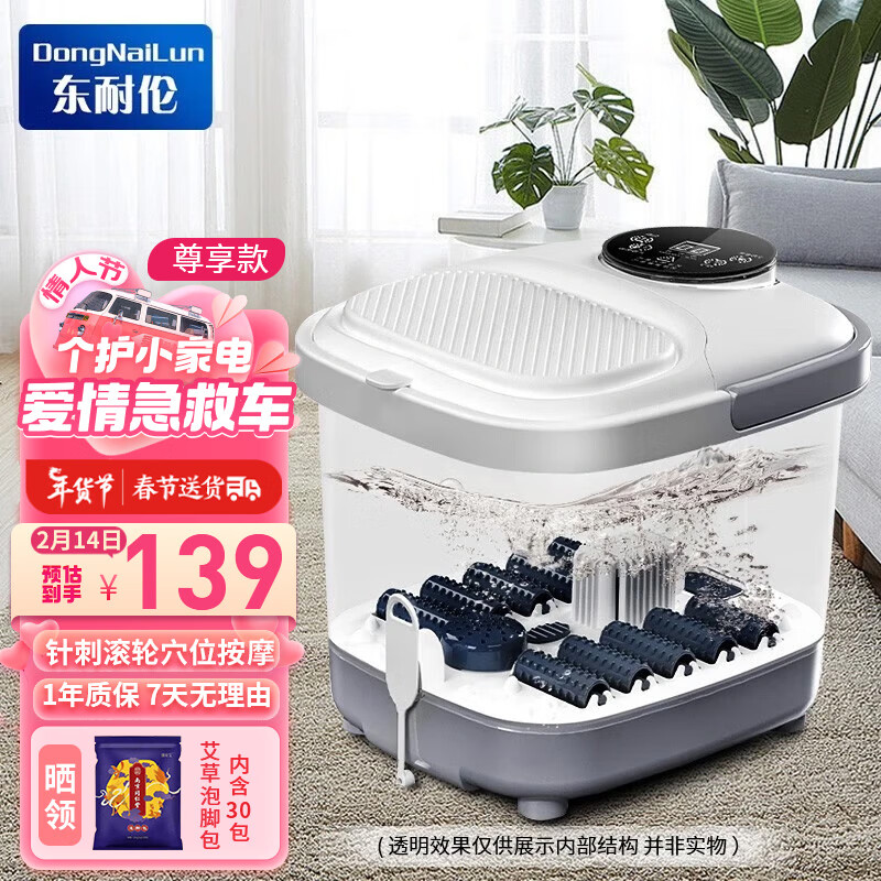 东耐伦泡脚桶足浴盆自动防漏电保护 按摩洗脚盆智能恒温加热泡脚盆脚动按摩洗脚桶送父母送长辈节日礼物 HS-ZY3 白色滚轮按摩尊享款价格:137.85元!