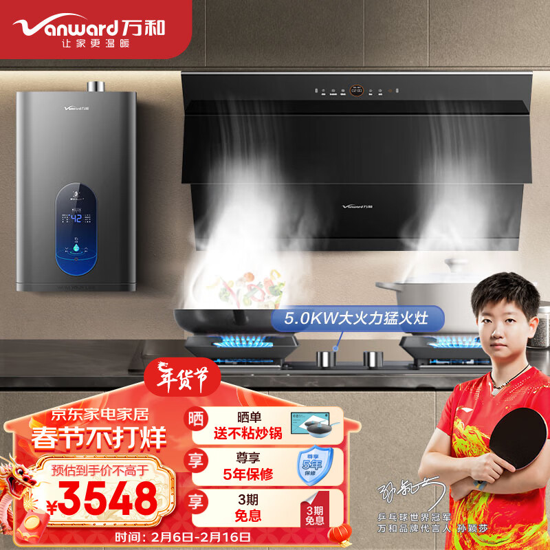 万和(Vanward)烟灶热三件套 24风量直流变频抽油烟机燃气灶具热水器套装 WJ920+C5L90S+ME5D16(天然气)价格:3548.00元!