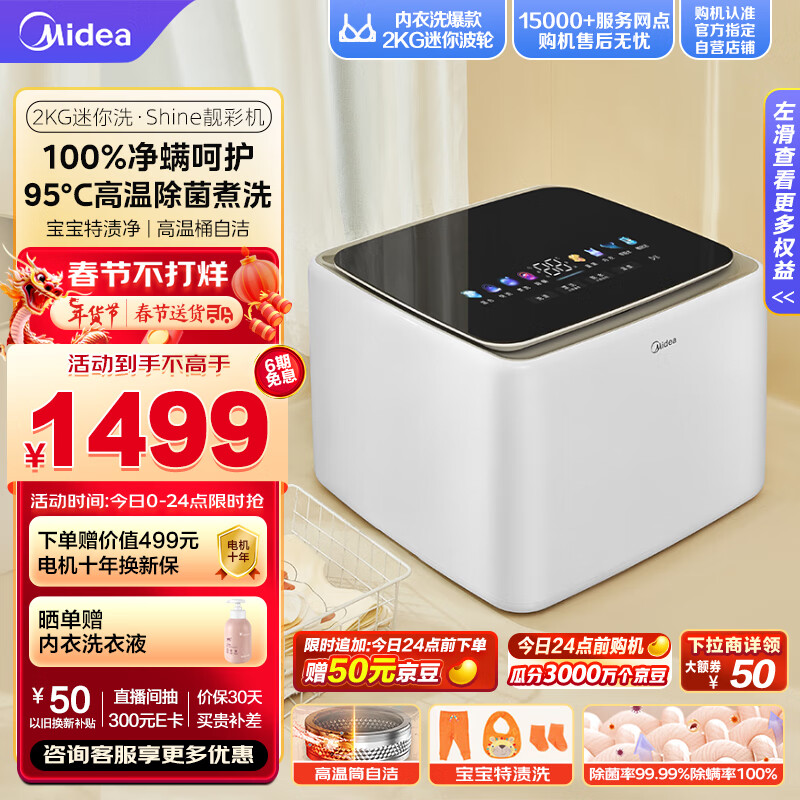 美的(Midea)2KG迷你洗衣机全自动 美的焕净内衣洗衣机小型 迷你洗衣机 婴儿洗衣机 95℃除菌净螨 MNB20-01W价格:1499.00元!