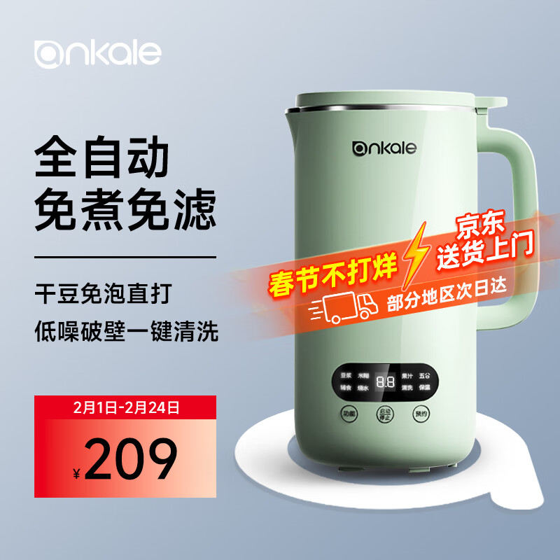 ankale破壁机 豆浆机 迷你小型家用免洗 五谷杂粮全自动免煮 破壁豆浆机 清新绿/1L价格:239.00元!