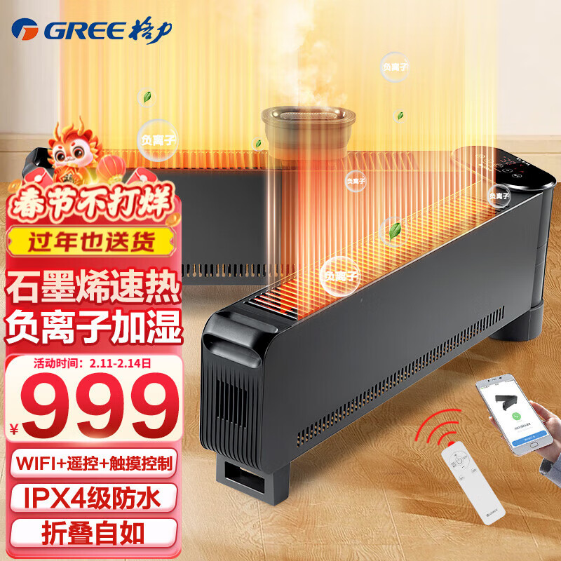 格力(GREE)折叠踢脚线取暖器家用大面积电暖器遥控电暖气片IPX4级防水移动地暖浴室干衣暖风机 【1.5米石墨烯取暖器】NDJD-S6022B价格:949.00元!