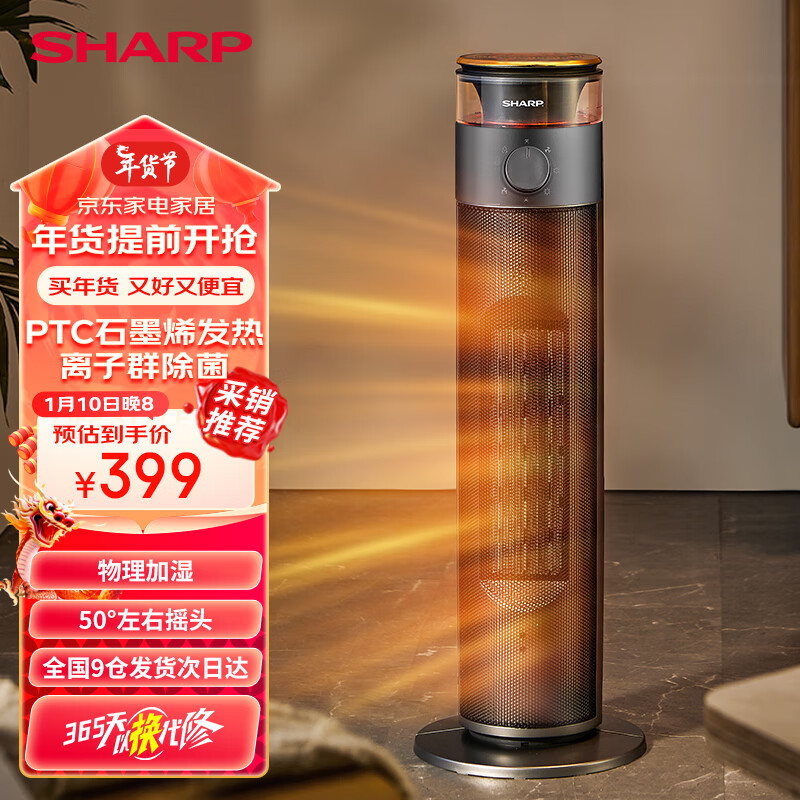 夏普取暖器石墨烯家用暖风机立式电暖风浴室热风机冷暖风扇电暖气节能速热电暖器卧室烤火炉价格:443.00元!