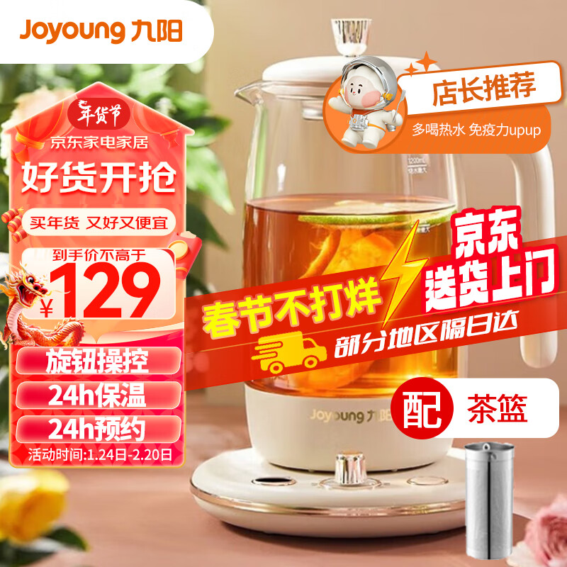 九阳(Joyoung)养生壶玻璃花茶壶 复古英伦造型 电水壶热水壶烧水壶 24h预约 1.2L K12D-WY540价格:129.00元!