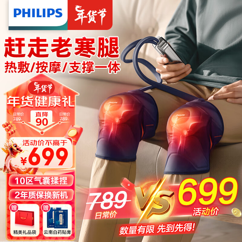 飞利浦(PHILIPS)膝盖按摩仪 膝盖热敷护理按摩器双膝揉捏护膝仪腿酸阴天腿冷暖膝 情人节礼物送男女友 5201L价格:789.00元!