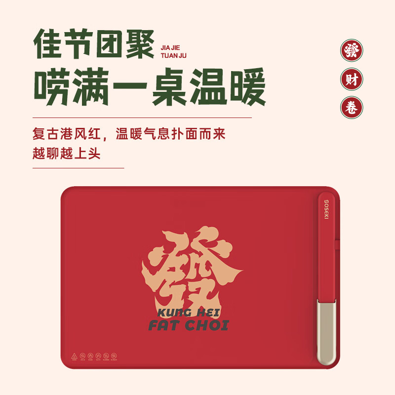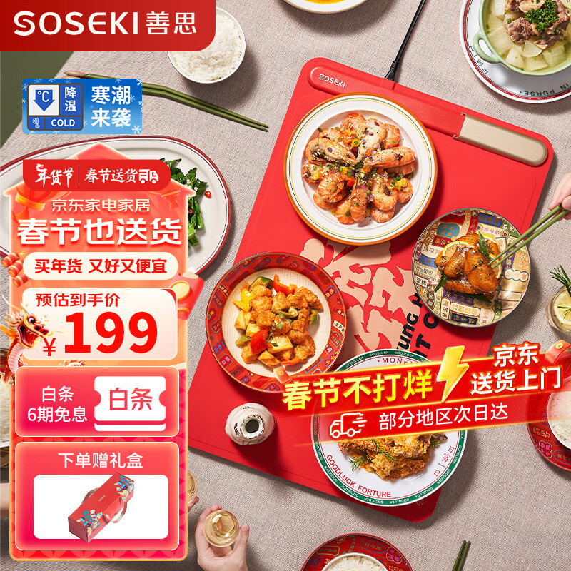 善思(Soseki)发财卷暖菜板饭菜保温板热菜板加热保温板杯垫热菜神器家用【方形胭脂红礼盒款】过年送礼送长辈价格:229.00元!