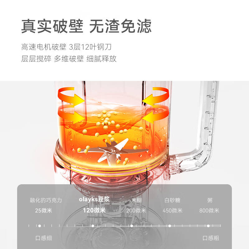 olayks破壁机 豆浆机 迷你小型家用多功能降噪低音 免洗全自动料理机 0.6L 1-2人价格:189.00元!