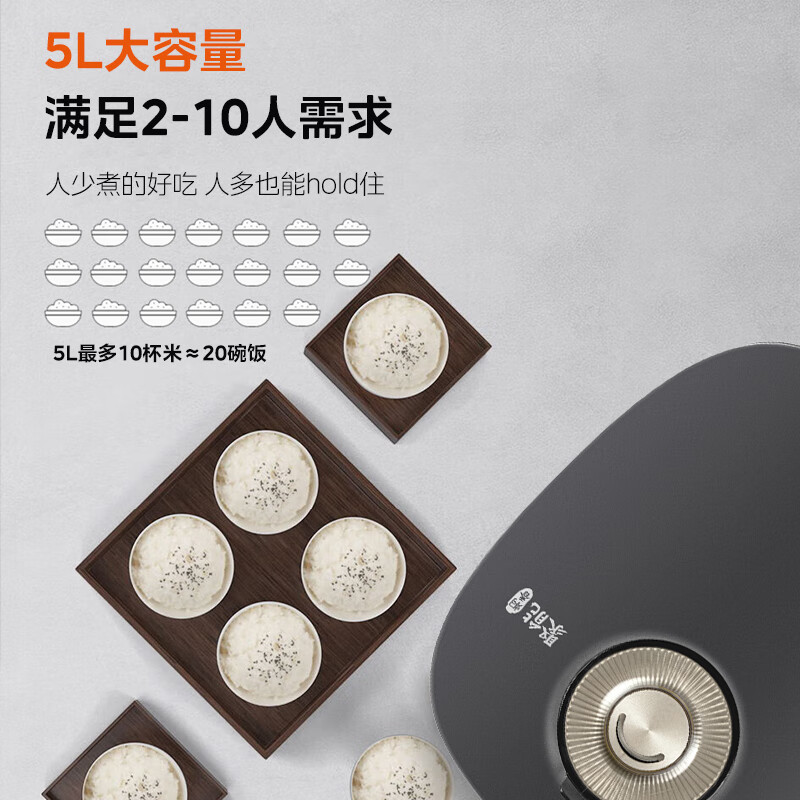 美的(Midea)彩屏电饭煲电饭锅家用5L大容量聚能釜金属机身大火力米饭锅MB-RE517(3-10人)价格:269.00元!