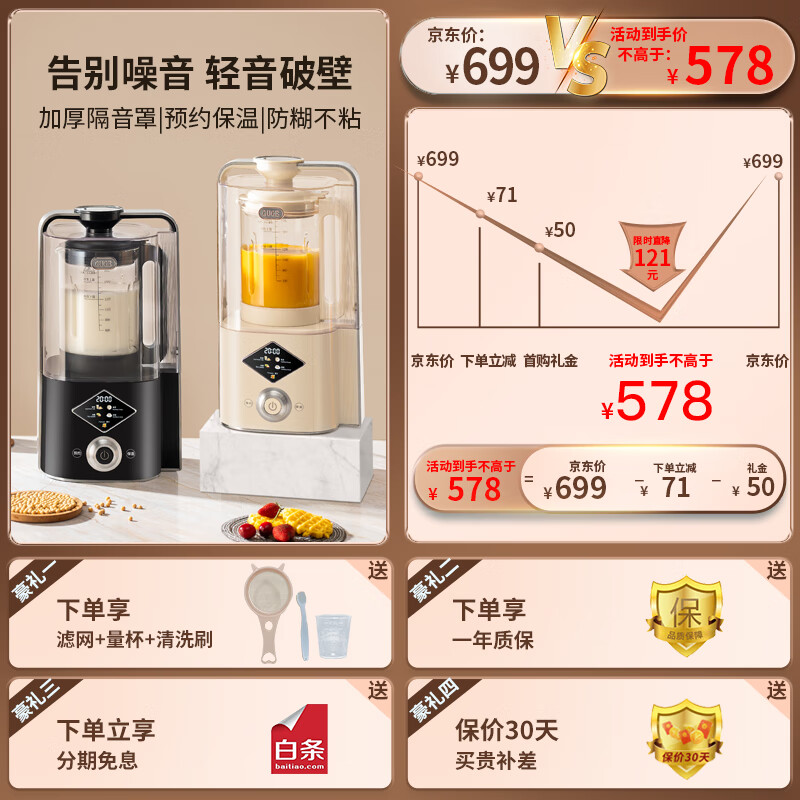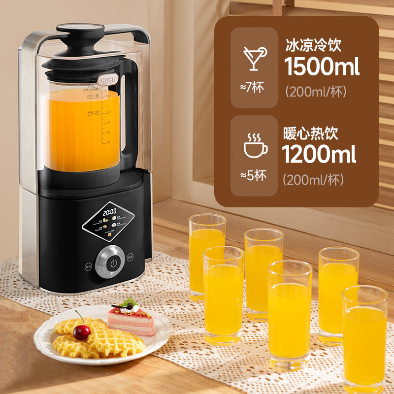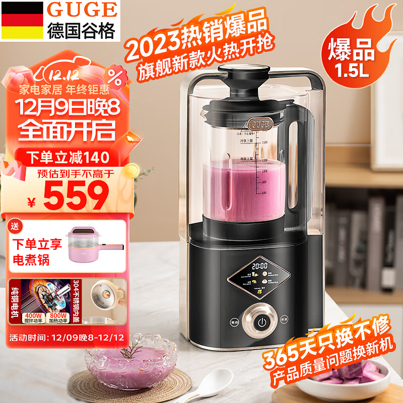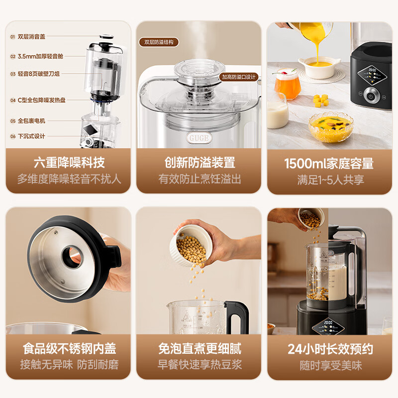 谷格(GUGE)【2023旗舰新款】德国静轻音破壁机家用豆浆机全自动免煮免洗五谷杂粮小型多功能榨汁机果汁料理机 GB658黑1.5L干湿两用冷热磨粉三合一破壁机价格:699.00元!