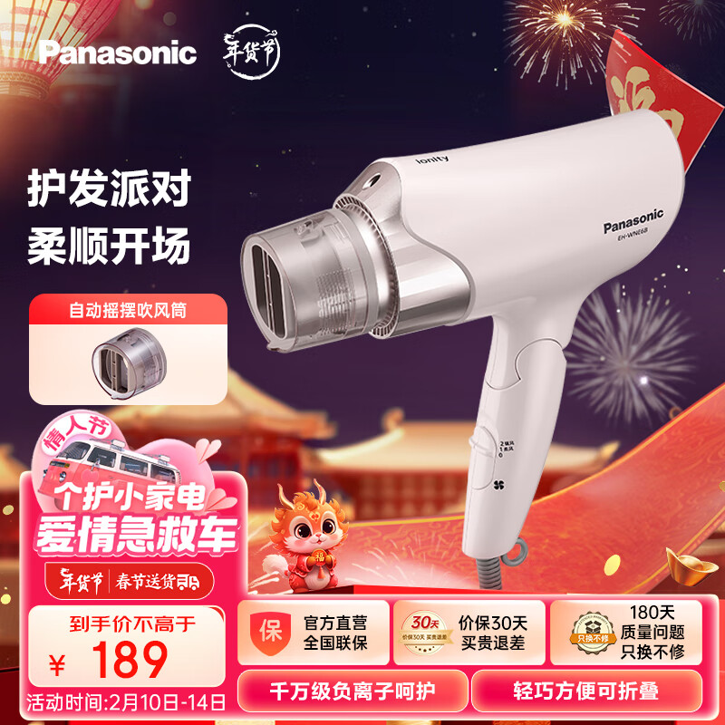 松下(Panasonic)电吹风机家用大功率高速大风力速干折叠便携家用 老婆女友吹发负离子护发风筒EH-WNE6B价格:219.00元!