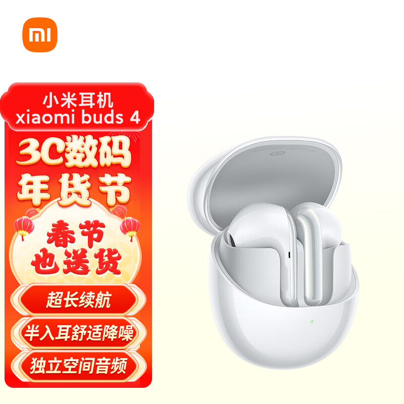 小米(MI)Xiaomi buds 4 盐湖白 真无线降噪蓝牙无线耳机 半入耳 苹果华为小米手机通用价格:499.00元!