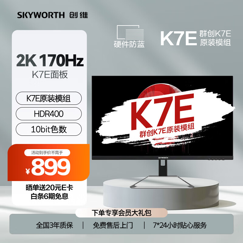 创维 27英寸 电竞显示器 2K 170Hz 快速液晶 GTG 1ms K7E原装模组 HDR400 低蓝光 电脑显示屏 F27G4Q价格:898.00元!
