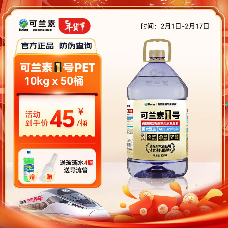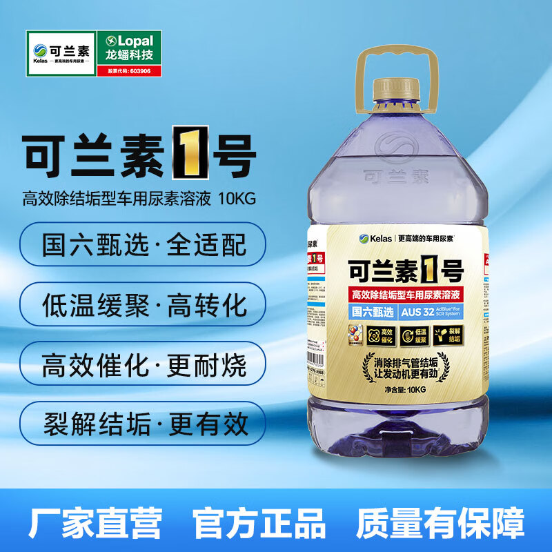 可兰素(KELAS)车用尿素 可兰素1号PET 国六甄选 10KG/50桶 柴油车尾气净化剂价格:2250.00元!