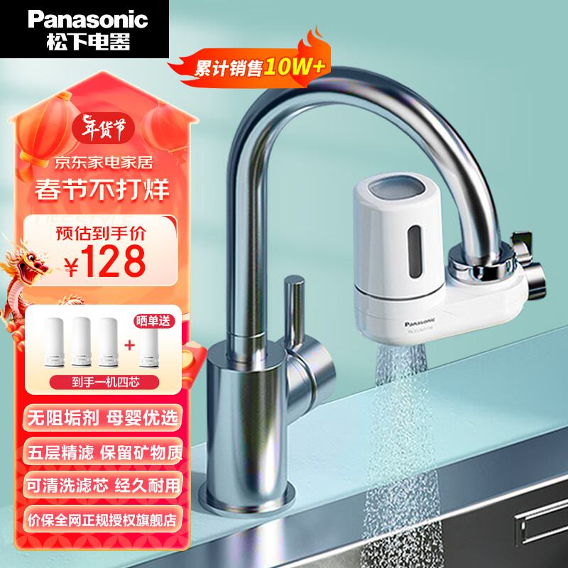 松下(Panasonic)龙头净水器 家用水龙头过滤器 自来水过滤器 厨房自来水过滤器 TK-EUNJ51W 一机三芯价格:128.00元!