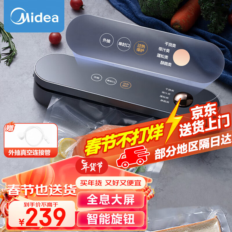 美的(Midea)真空包装机抽真空封口机家用商用小型真空保鲜机干湿两用食品塑封机密封机 MJ-CF07X7-101-100A价格:239.00元!