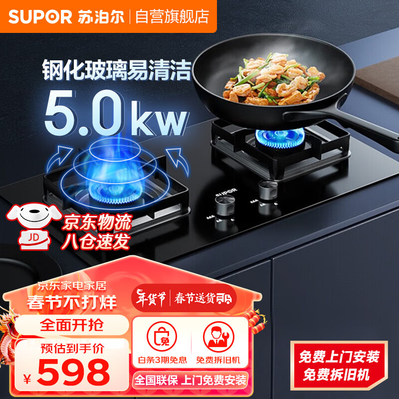 苏泊尔(SUPOR)燃气灶家用天然气灶5.0KW火力液化气灶双灶台式嵌入式两用罐装煤气灶灶具P10 【管道天然气】5.0KW钢化防爆面板价格:579.00元!