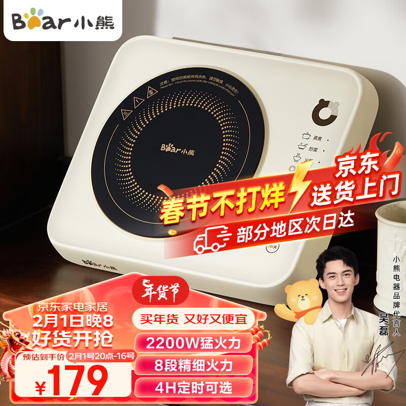 小熊(Bear)电磁炉 家用大功率2200W 火锅炉 电磁灶 智能定时 电灶防水黑色微晶面板DCL-B22H5价格:179.00元!