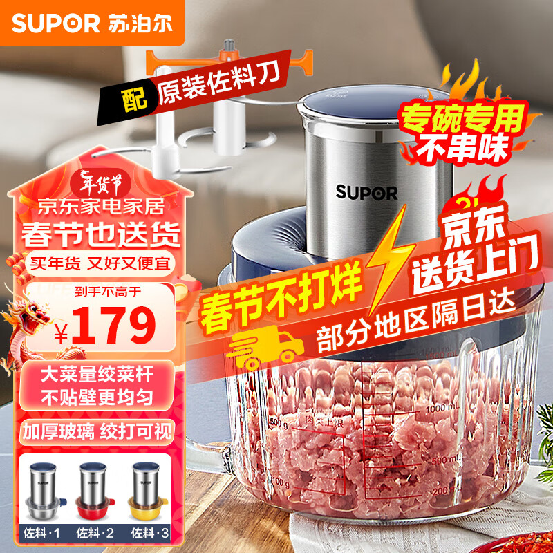 苏泊尔(SUPOR)佐料绞肉机家用 绞馅碎肉机多功能电动料理机佐料切菜婴儿辅食机切菜神器搅拌机JR61价格:179.00元!