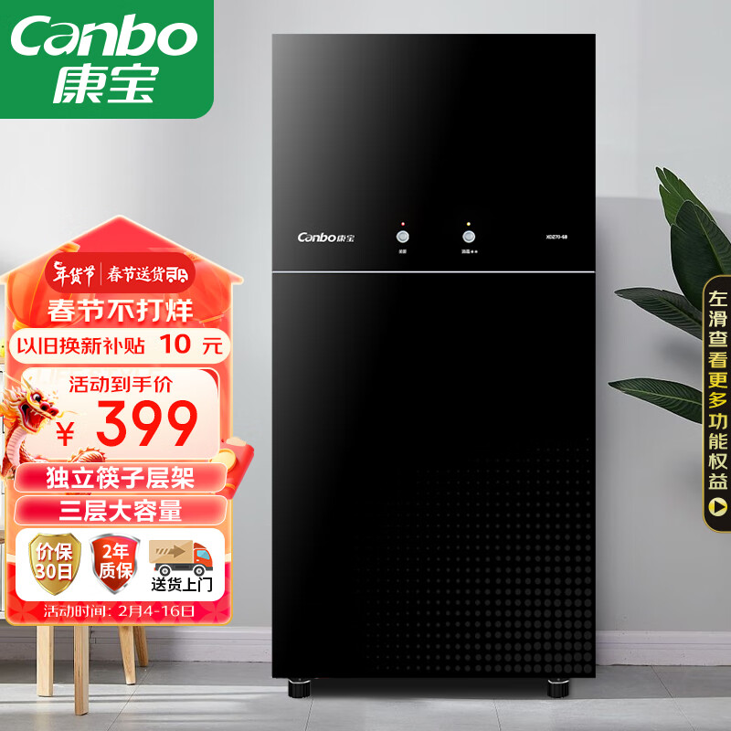 康宝(Canbo)消毒柜家用立式小型 二中温高温消毒烘干一体机 厨房柜碗碟筷餐具 双门收纳消毒碗柜 XDZ70-6B价格:519.00元!