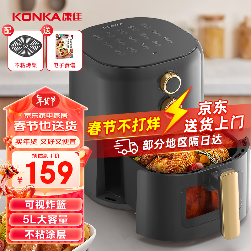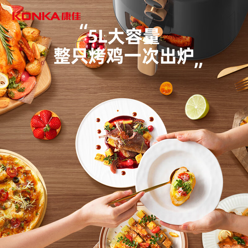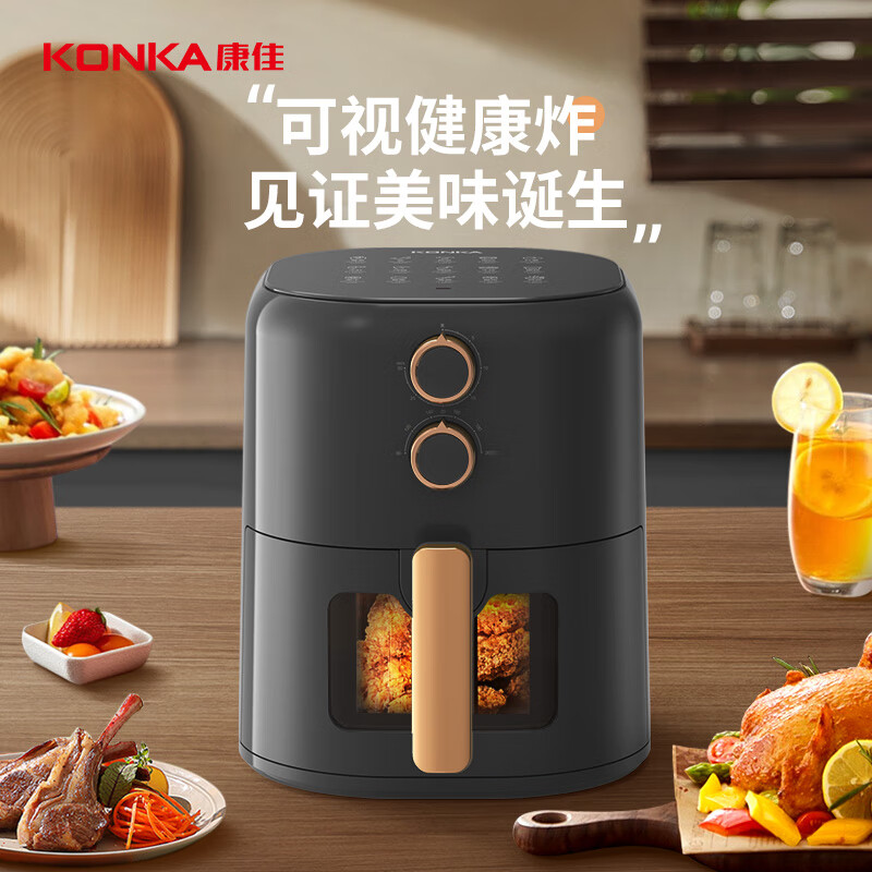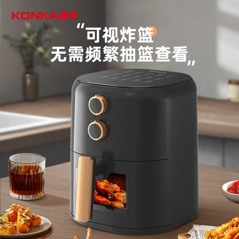 康佳(KONKA)空气炸锅5L 可视家用多功能无油电炸锅 低脂少油 耐磨不粘易清洁 KKZG-4509-W价格:159.00元!