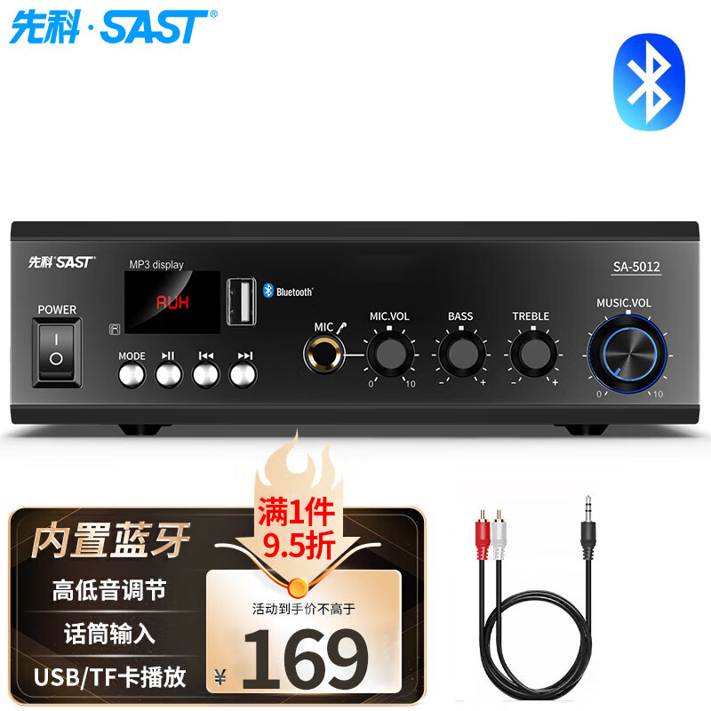先科(SAST) SA-5012 定压大功率功放机 公共广播吸顶喇叭音响蓝牙功放 黑色价格:178.00元!