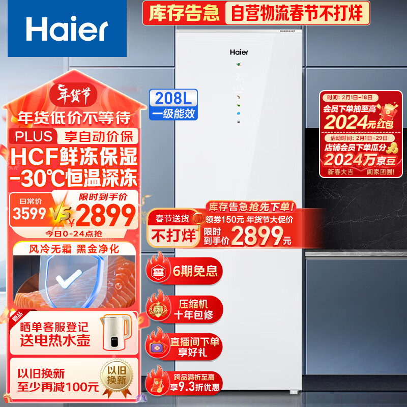 海尔(Haier)珍味系列208升风冷家用立式冰柜 冷藏冷冻柜抽屉式冷柜小冰柜家用小冰箱BD-208WGHW1以旧换新价格:3049.00元!