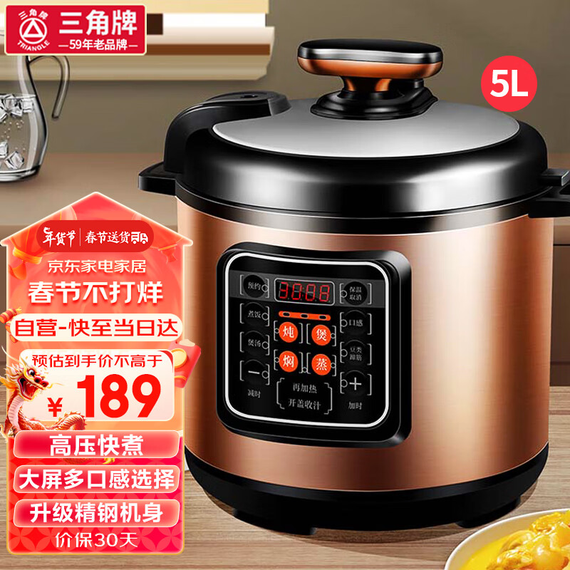 三角牌(Triangle)电锅家用高压锅多功能电高压锅高压电饭锅饭煲双胆大容量煲汤 5升单胆 适合4-6人价格:189.00元!