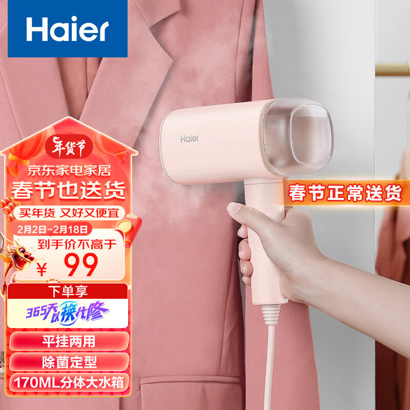海尔(Haier)手持小型挂烫机 蒸汽电熨斗家用差旅折叠迷你便携烫衣机 除菌除皱定型熨烫机 HY-GW2503价格:110.00元!