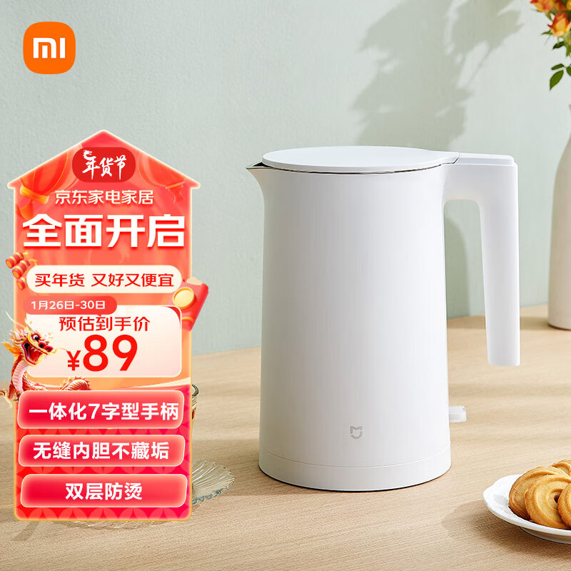 米家 小米电水壶2 热水壶 烧水壶 1.7L大容量 1800W快烧 304不锈钢 双层防烫 STRIX温控器 无缝内胆价格:89.00元!