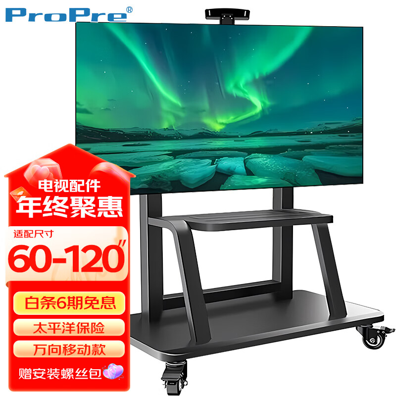 ProPre移动电视落地支架60-120英寸视频会议移动推车液晶显示屏希沃多媒体一体机展示支架75/85/100/120英寸价格:889.00元!