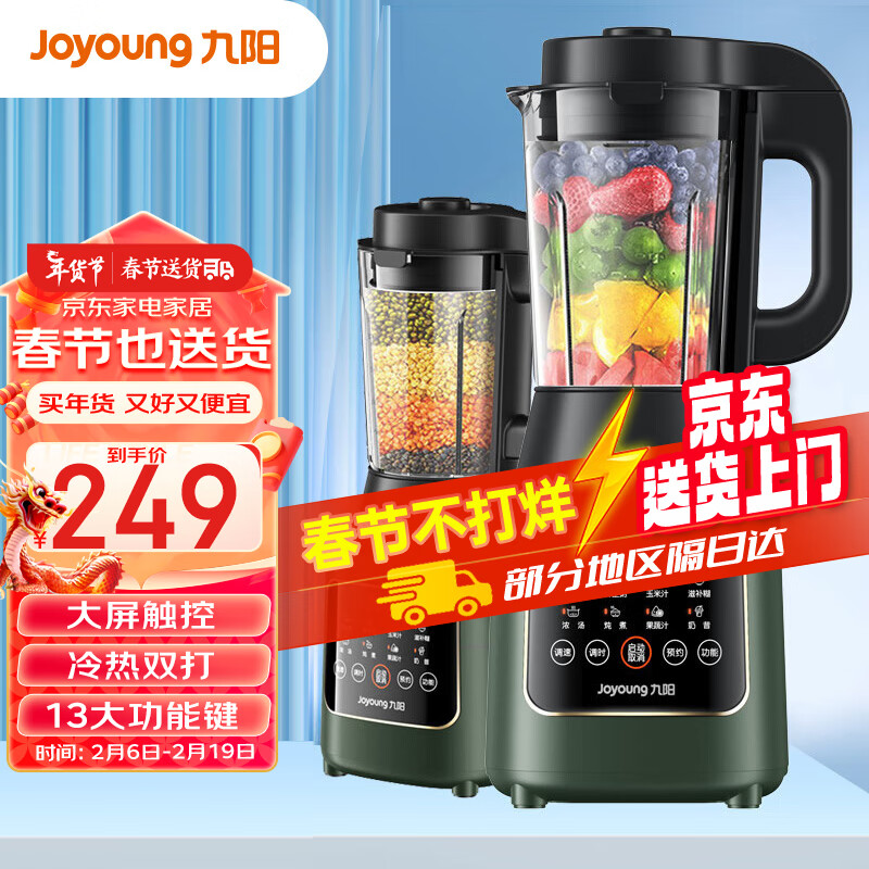 九阳(Joyoung)破壁机 多功能家用小型预约加热破壁料理机 榨汁机 豆浆机 辅食机 1L精巧小容量 复古绿L12-P127价格:249.00元!