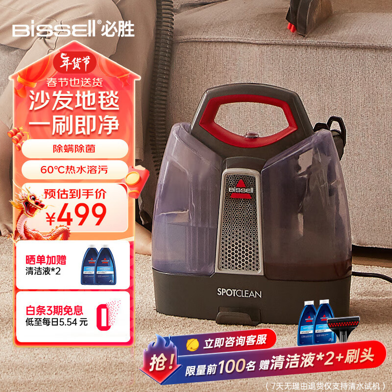 必胜(BISSELL)多功能布艺清洗机喷抽吸一体家用除螨洗地毯清洗机地毯沙发床垫窗帘汽车清洁神器 3698Z价格:549.00元!