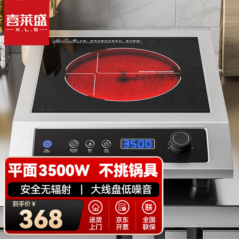 喜莱盛商用电陶炉3500W温度可达650度 大功率电陶炉台式平面光波炉不挑锅具电炒炉可预约定时价格:368.00元!