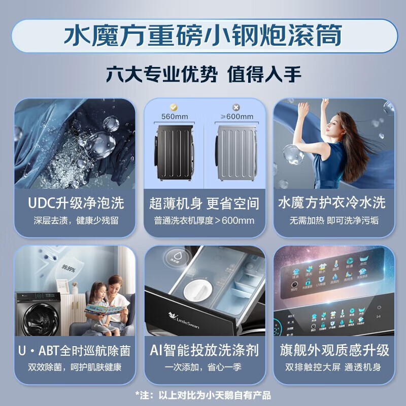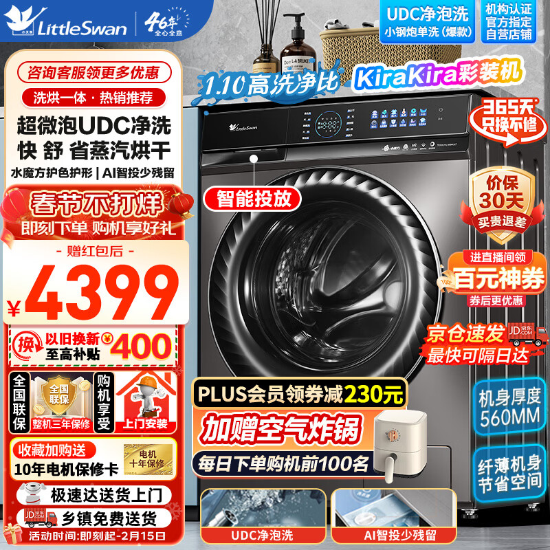 小天鹅(LittleSwan)滚筒洗衣机洗烘一体全自动 水魔方防缠绕小钢炮UDC净泡洗 智能投放 一级变频VC189【V88升级款】价格:4399.00元!