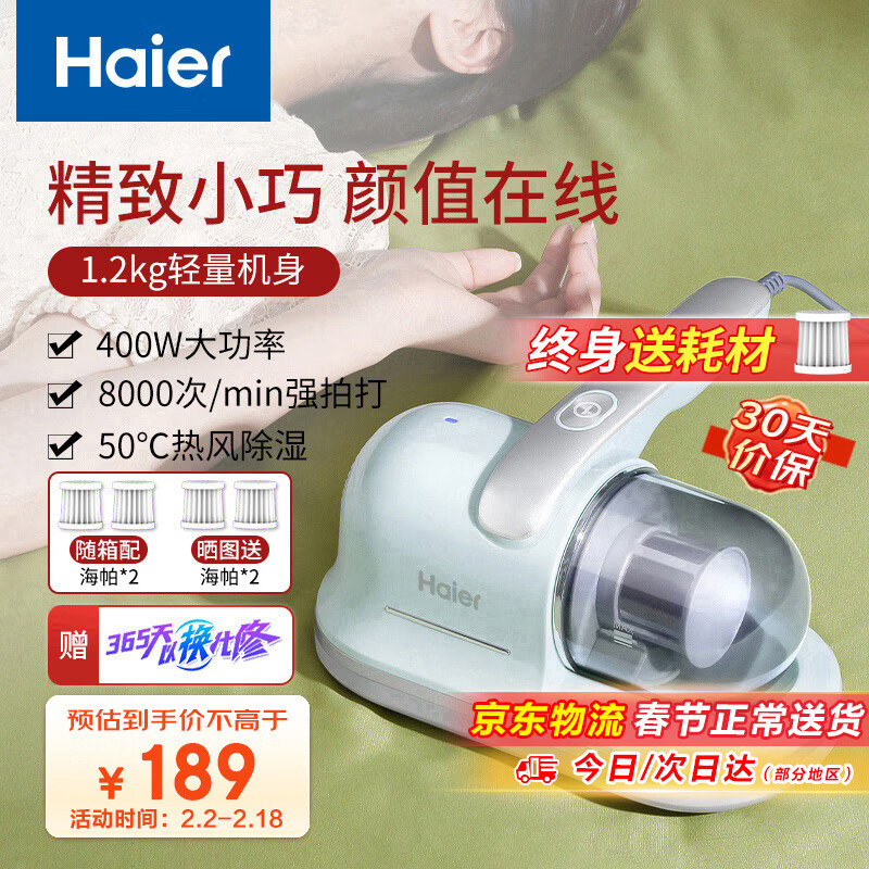 海尔(Haier)除螨仪家用床上手持非无线双拍打HZ-C602 紫外线杀菌除螨 太空舱旋风吸尘价格:199.00元!