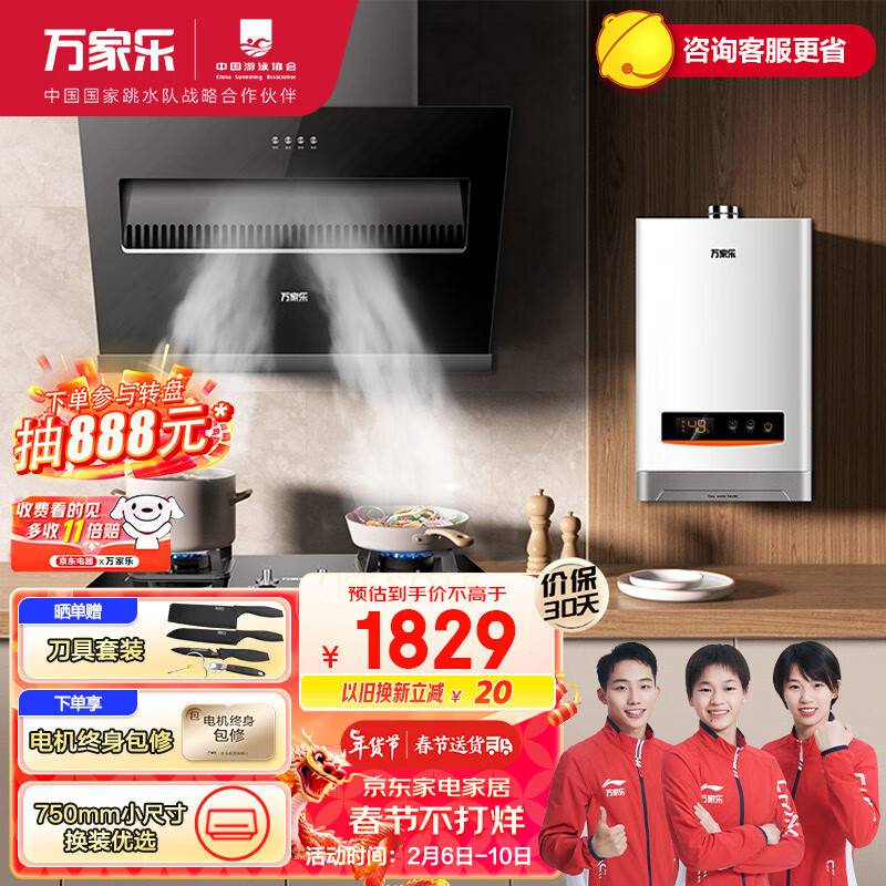 万家乐 抽油烟机 18m3/min侧吸抽油烟机12升智能恒温热水器 烟灶热三件套装AL031+KA031B +12LD13液化气价格:2129.00元!