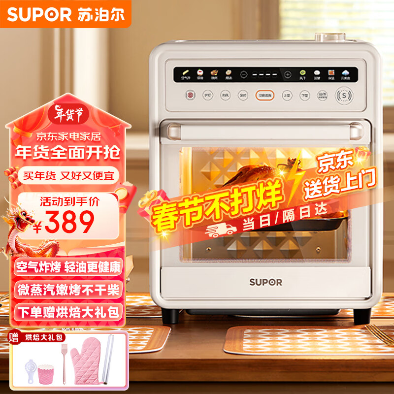 苏泊尔(SUPOR)20L家用风炉电烤箱 蒸汽烤炸一体顶部热风循环低温发酵一键烘干广域温控 OD20AK812价格:429.00元!