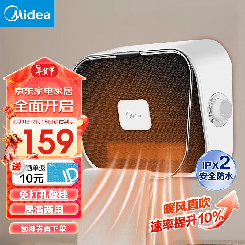 美的(Midea) 取暖器 暖风机家用 壁挂电暖器 浴室电暖气片 IPX2防水冷暖两用节能省电速热烤火炉暖风机 【居浴两用】20Y价格:269.00元!