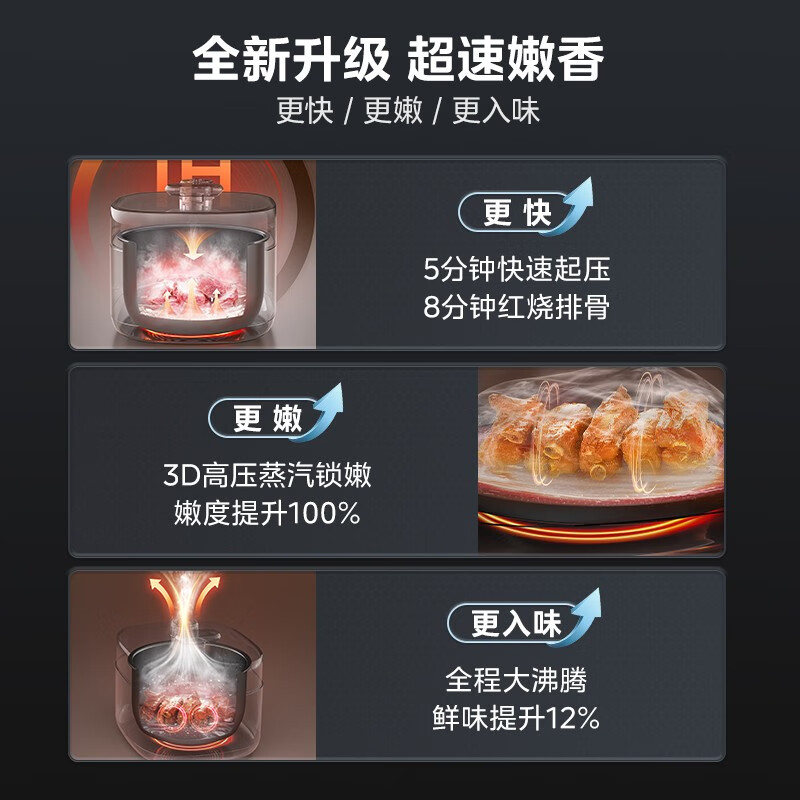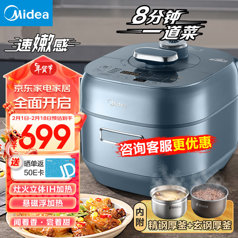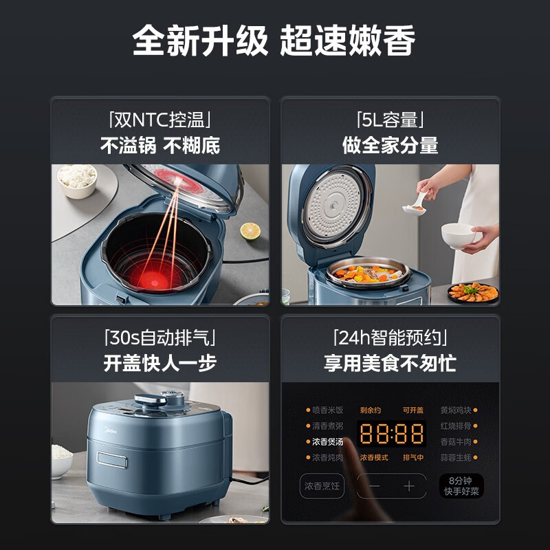 美的(Midea)速嫩感电锅 8分钟一道菜 5L高压锅锅家用智能预约双胆高压电饭煲 1600W大火力IH|适用4-10人 5L价格:1099.00元!