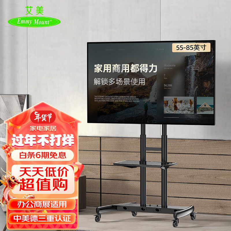 Emmy Mount/艾美 移动电视支架(55-85英寸)通用落地电视挂架电视推车视频会议显示屏移动电视支架电视推车价格:529.00元!