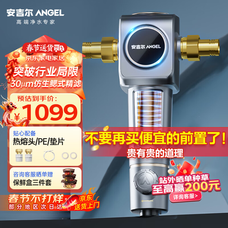 安吉尔前置鱼鳃过滤器 6T大通量 30μm精滤仿鳃叠片 2倍抗污堵旋转冲洗家用 净水器 J3423-SDG-4000价格:1099.00元!
