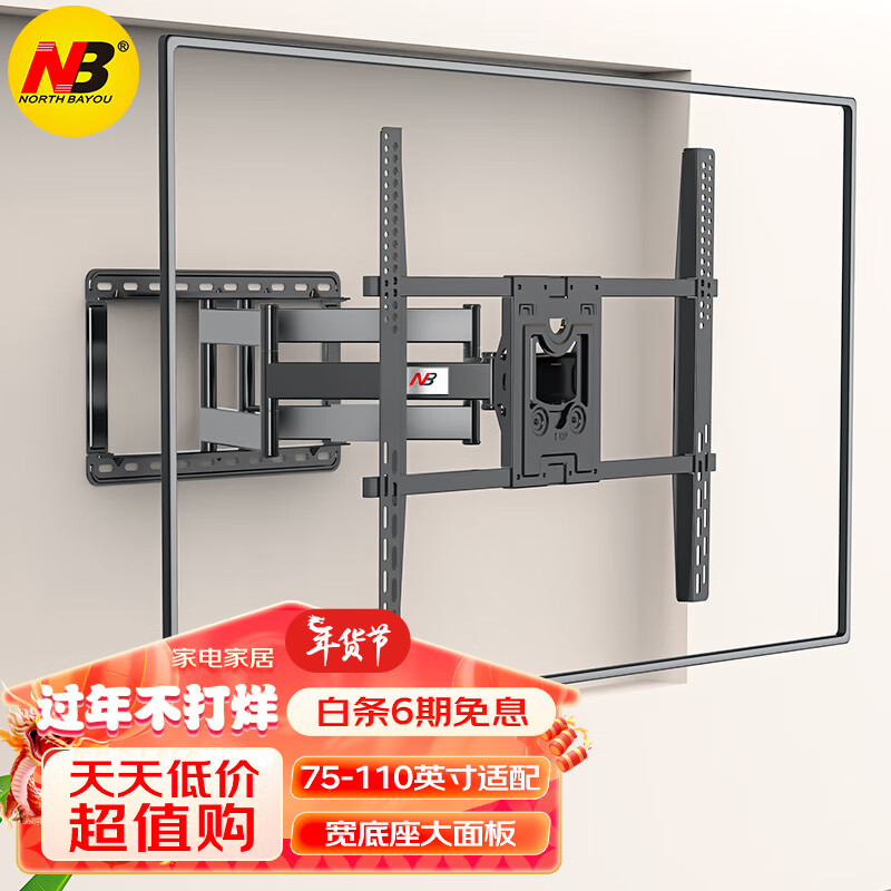 NBSP5-B (75-110英寸)通用电视挂架电视架电视机长臂挂架 电视支架旋转伸缩小米海信TCL创维电视架价格:499.00元!