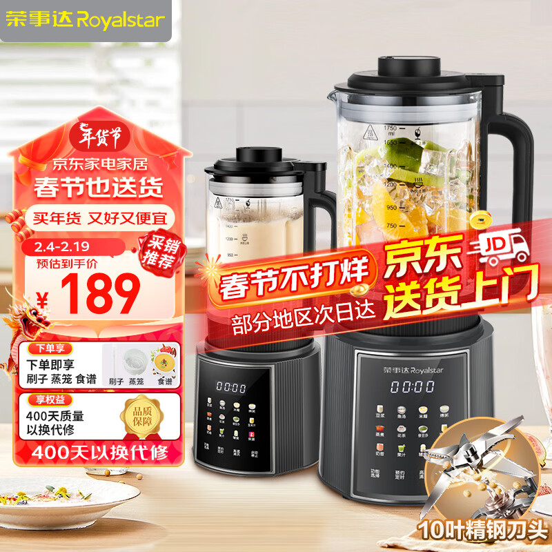 荣事达(Royalstar)破壁机家用豆浆机料理机榨汁机搅拌果汁机多功能预约定时婴儿免滤辅食机RZ-328H(D)价格:189.00元!