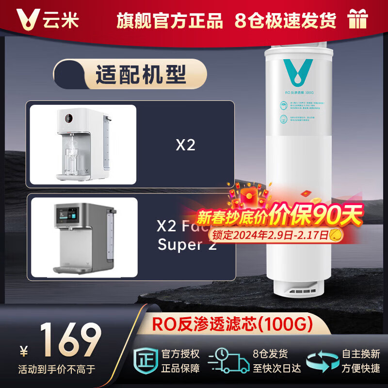 云米(VIOMI) 升级款云米净水器滤芯适配机型S2、Fast3、X2、Quick5、MeePlus、澎湃/Fast 1000G 2号RO膜100G(X2/X2 Face)价格:189.00元!