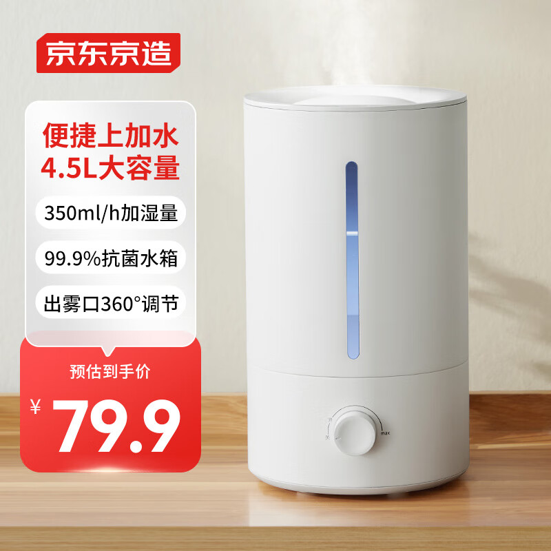 京东京造 加湿器 卧室家用办公室桌面空气加湿器 4.5L大容量 小型立式低噪 上加水 银离子材料价格:79.90元!