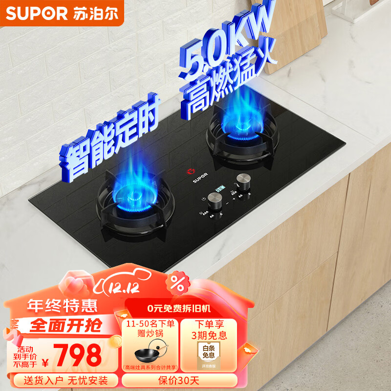 苏泊尔(SUPOR)燃气灶双灶家用 天然气双灶具5.0kW大火力 嵌入式台式两用灶台 智能定时 全进风DB2Z7天价格:659.00元!
