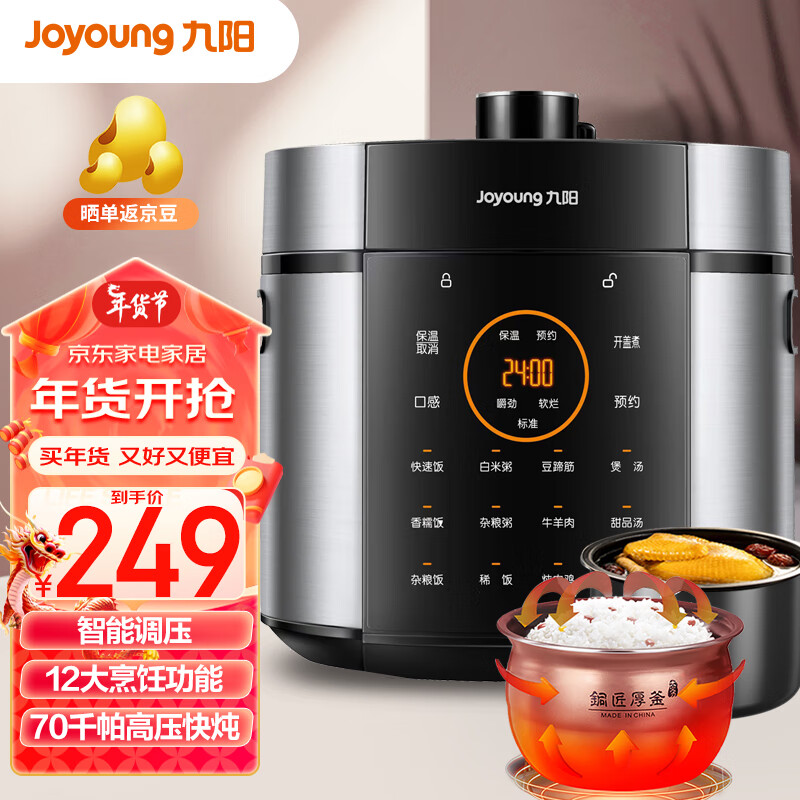 九阳(Joyoung)家用5L电锅煲电高压锅1000W八段调压口感可调12大功能年货送长辈送老人JYY-50C3(C)价格:249.00元!